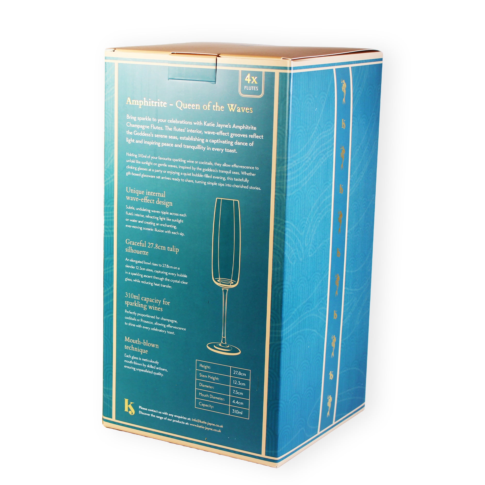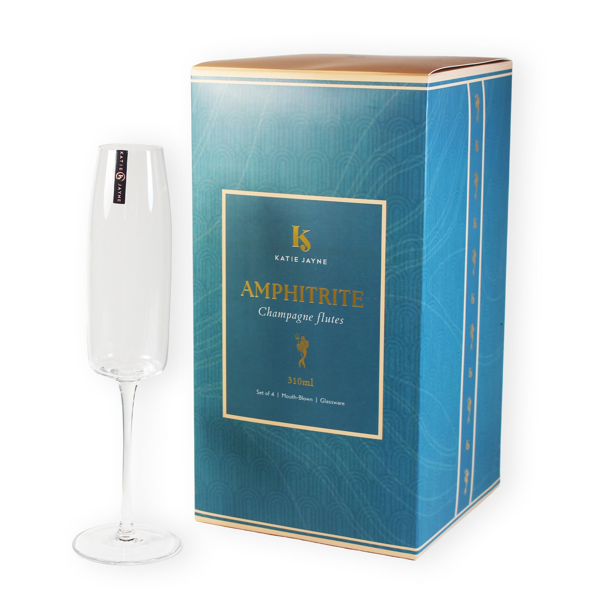 - What’s in the box: Set of 4 Amphitrite Champagne Flutes